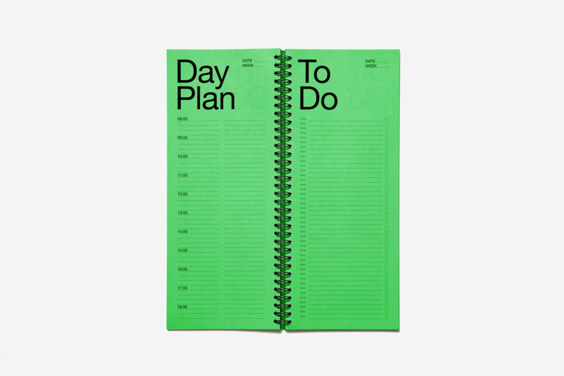 It includes yearly, monthly, and weekly overviews, with lots of space for notes, lists, and free planning. The open spine binding allows the planner to lay completely flat, making it easy to write anywhere — at your desk or on the go.