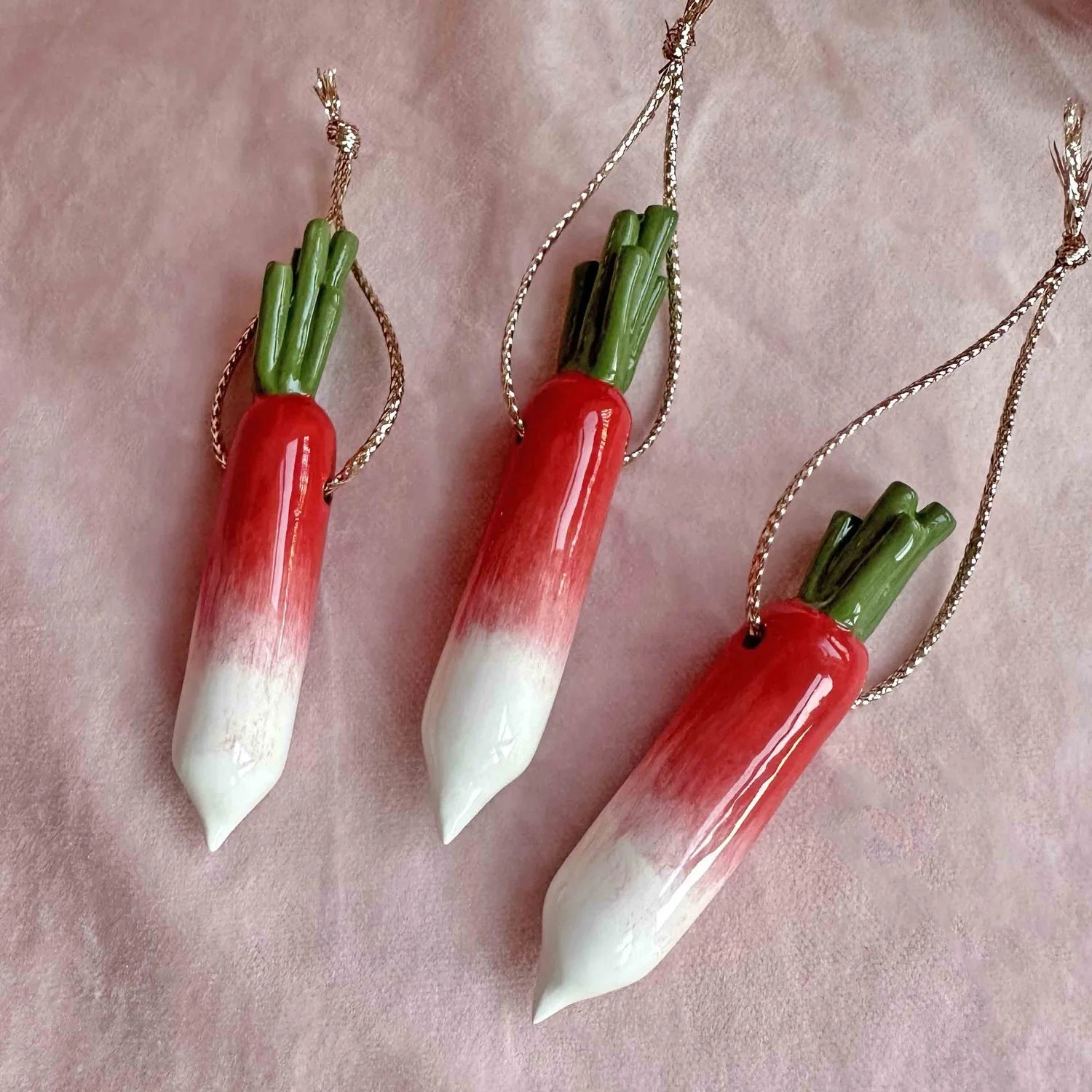 Handmade in Margate, beautiful ceramic Christmas tree decorations. Each one is completely unique, hand built and glazed and makes the perfect addition to your Christmas tree. Featuring two 24ct gold lustre peas.