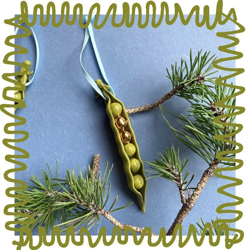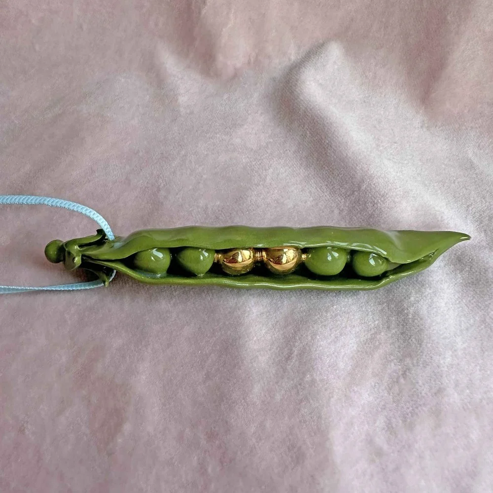 Minnie Mae Stott | Ceramic bauble - Gold Peas In a Pod