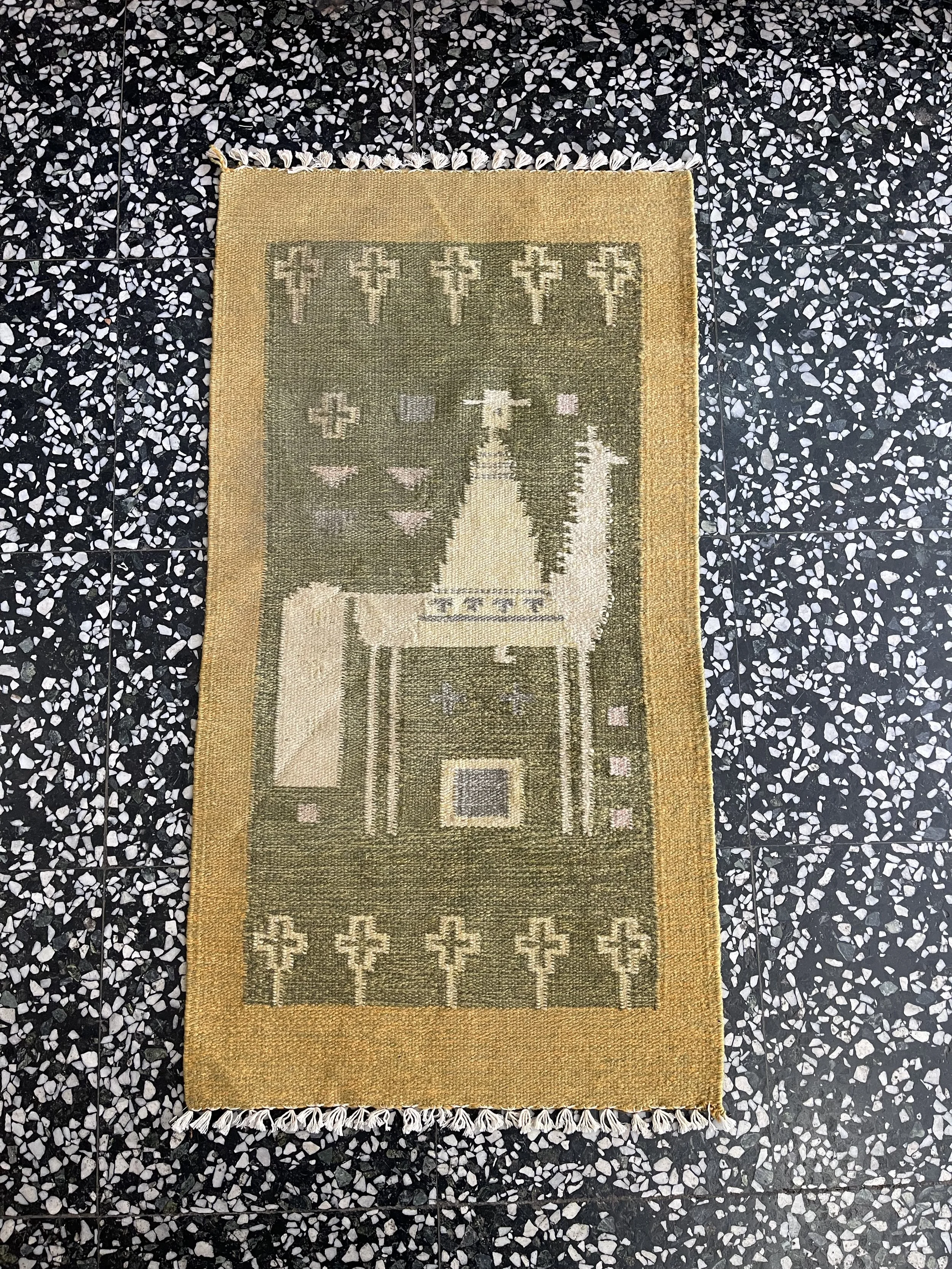 Please note this rug, like all of our vintage, one-of-one textiles and furniture pieces, is sold as seen and in good vintage condition. Any obvious imperfections will be shown in the images. For more information or further images, please email us at shop@searchandrescuelondon.co.uk.